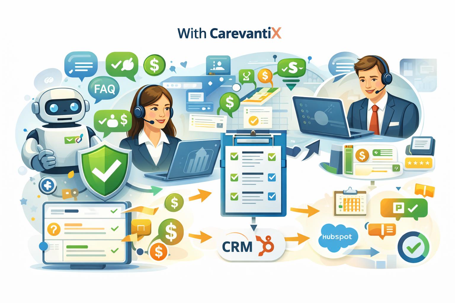 Our customers typically automate 50–80% of repetitive conversations while keeping humans focused on complex, high-value work. CarevantiX handles the heavy lifting — triage, qualification, enrichment, and next steps — while routing nuanced or high-ticket opportunities directly to your team.